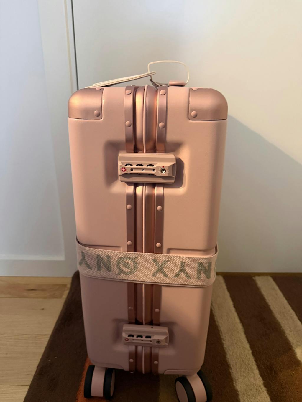 Our Check-in Medium and Carry-on with front pocket in our iconic color “Desert Clay.” A unique color combination you won’t find anywhere else. Carried through the streets of Stockholm.