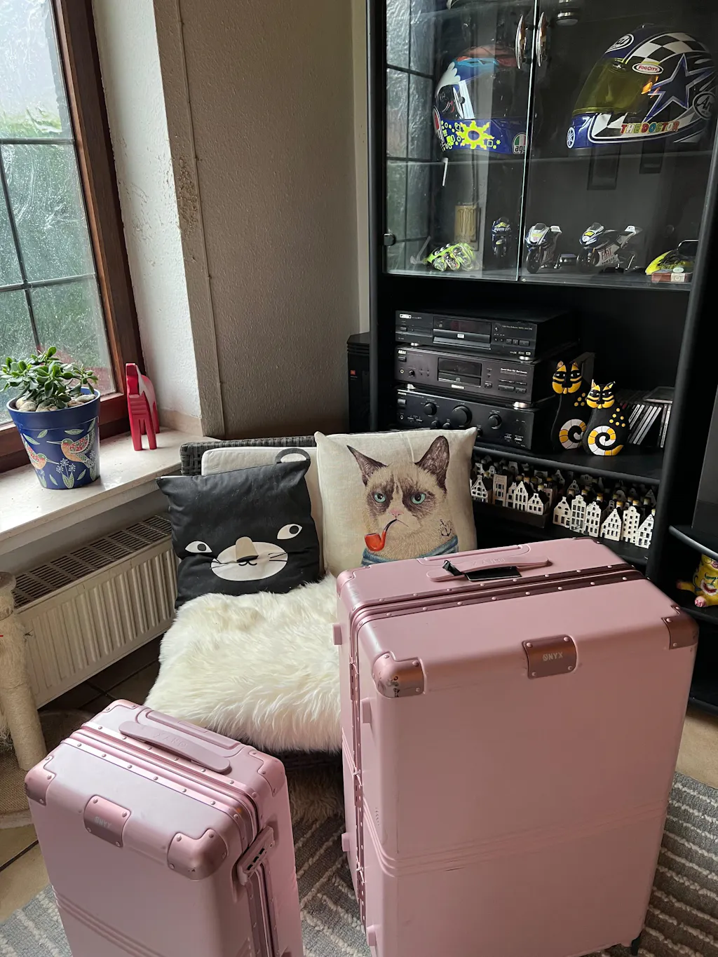 Val op met de handbagage en check-in medium in de kleur Candy Pink, speels, stijlvol en direct herkenbaar. Een frisse tint die luxe en persoonlijkheid uitstraalt, elke reis weer.
